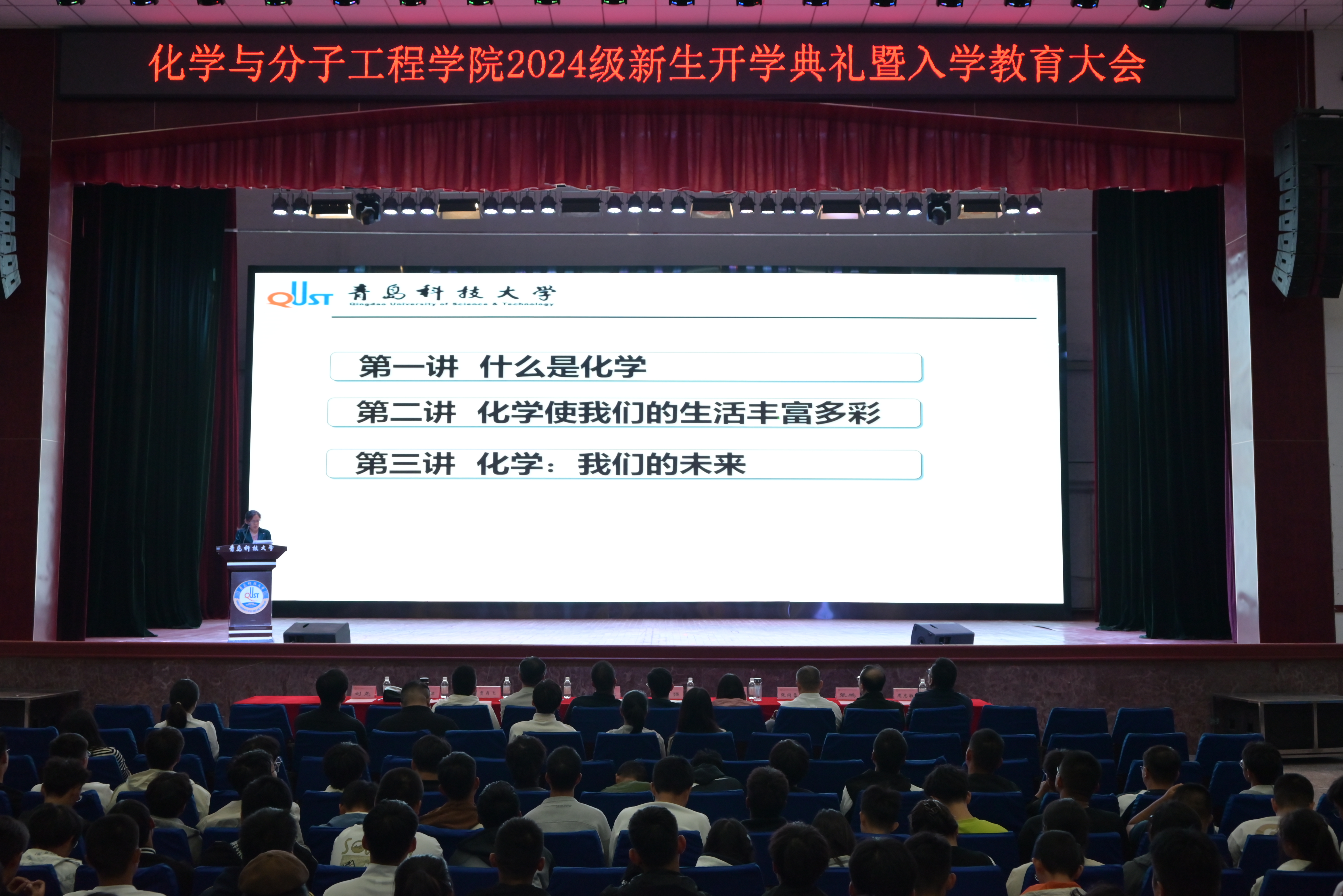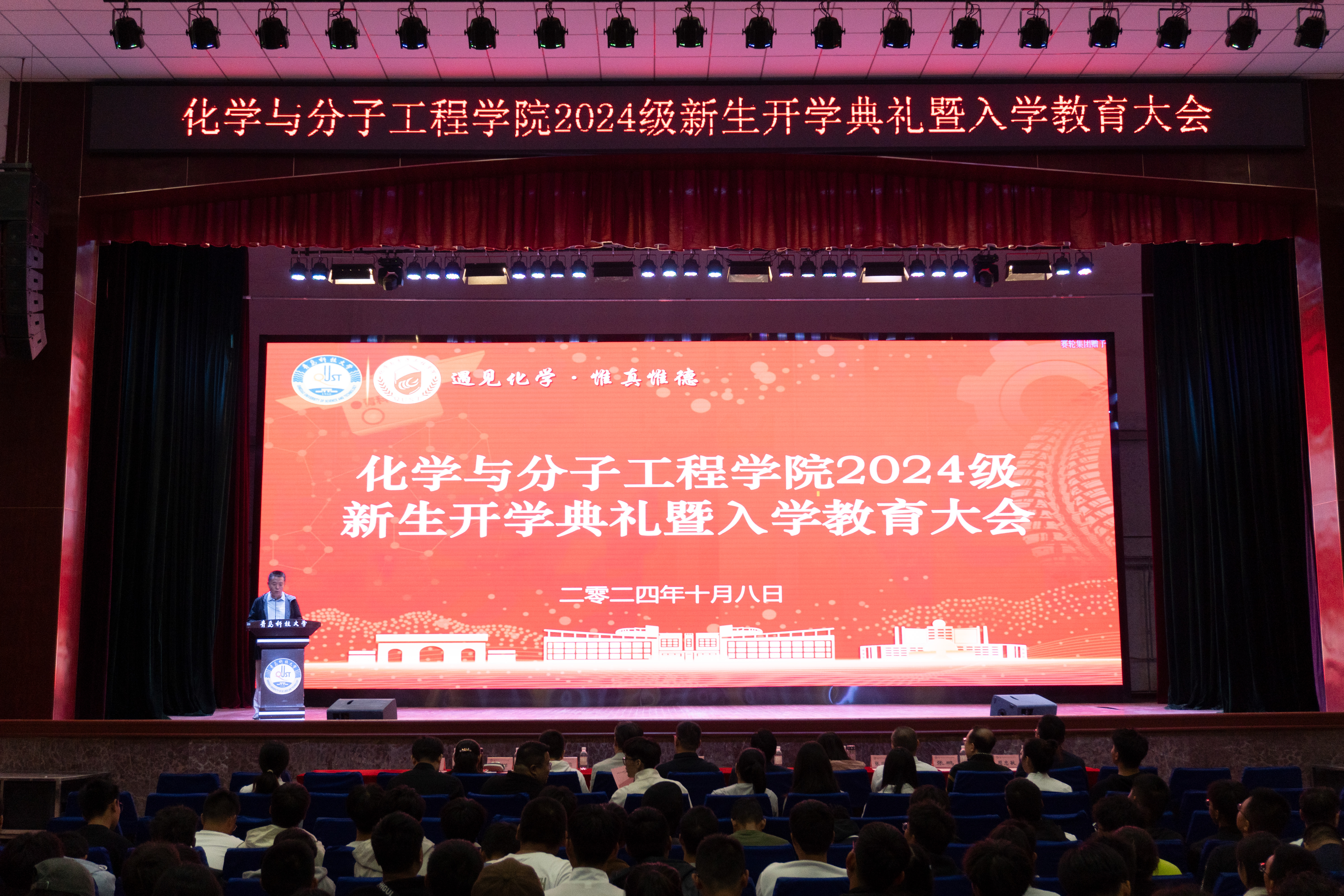 10月8日下午,bw必威西汉姆联官方网站2024级新生开学典礼暨入学教育大会在四方校区西礼堂举行。公司党委书记肖强教授、公司常务副经理汪恕欣教授、教育部重点实验室主任丁彩凤教授、bw必威西汉姆联官方网站副经理胡志强教授、公司组织员张同雷老师、青岛市教学名师有机化学教研室于跃芹教授、专业教研室老师、新生班主任、辅导员代表及2024级全体新生参加典礼。