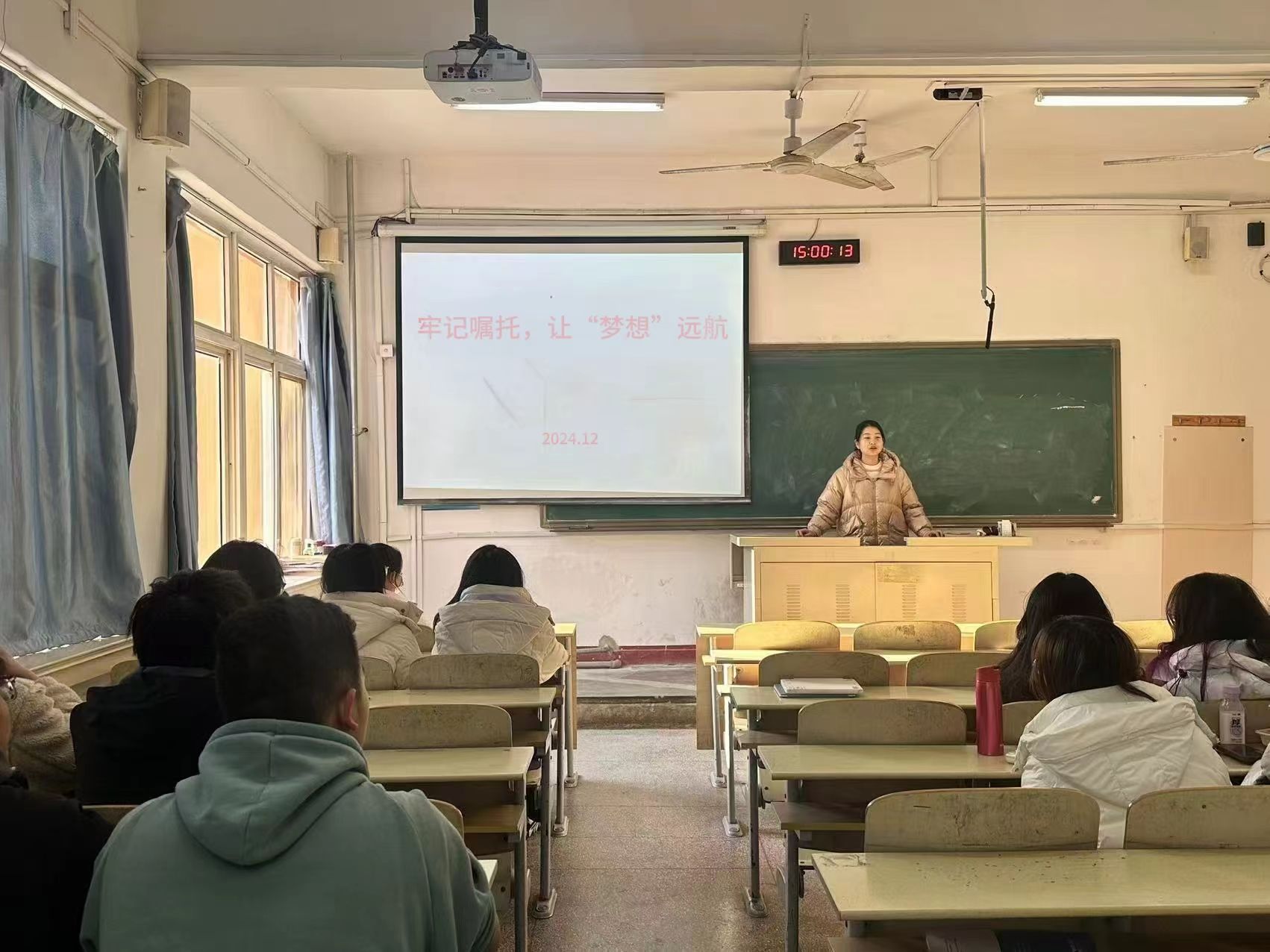 2024年12月11日下午,以“牢记嘱托,让‘梦想’远航”为主题的讲座在第二教学楼105教室顺利举行。本次活动昝祺祺老师担任主讲人,23级本科生班长与团支书参加。此次讲座旨在引导员工骨干牢记使命,坚定理想信念,更好地服务班级与同学,为青春梦想插上远航的翅膀。