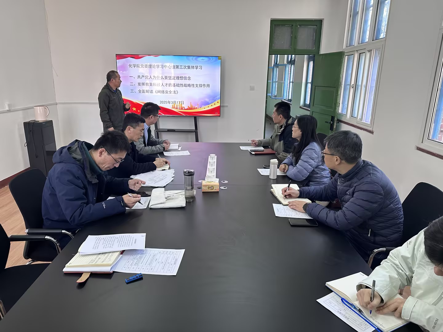 3月17日,公司党委理论学习中心组在能源化学教研室举行第三次集体学习,公司党委理论学习中心组成员参加会议,组织员张同雷带领大家一起学习了《共产党人为什么要坚定理想信念》、《发挥教育科技人才的基础性战略性支撑作用》、《全面解读<网络安全法>》等三个主题,之后各位委员交流了自己的学习心得。