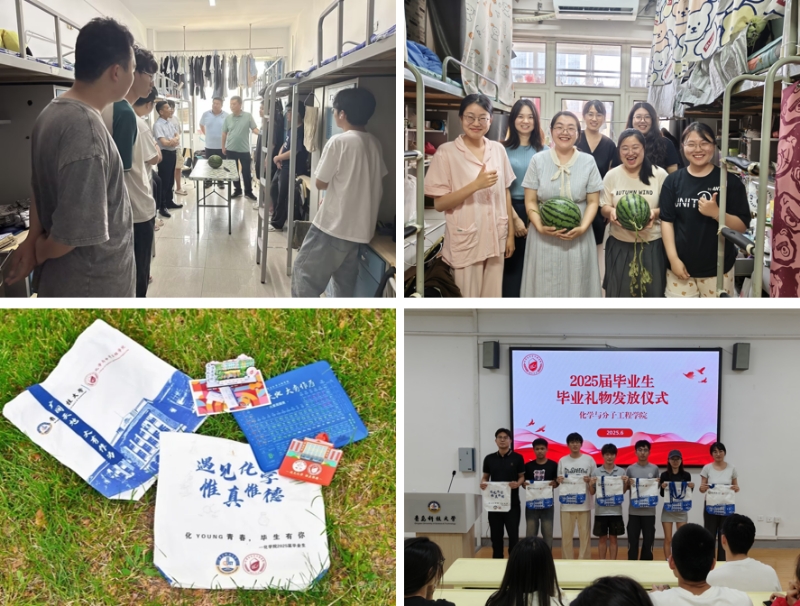 赠礼寄情长。6月20日,公司领导、全体辅导员深入宿舍,走访慰问毕业生,祝福同学们在未来的人生舞台上开启新的篇章,公司为每位毕业生都准备了“独家定制”的礼物:个人专属登机牌钥匙扣,希望同学们到祖国最需要的地方发光发热;化学周期表鼠标垫,突出公司专业特色;“一政”特色建筑行李牌,祝愿化院学子毕业一路顺风;院训专属定制摆件,饱含公司对学子的殷殷嘱托;“遇见化学”帆布包,包下所有青科青春记忆和未来所有美好。定制的专属礼物,饱含公司和老师们对毕业生深深的情意与祝福,祝愿2025届毕业生踔厉奋发、砥砺前行,将青春之花热烈绽放在祖国各地。