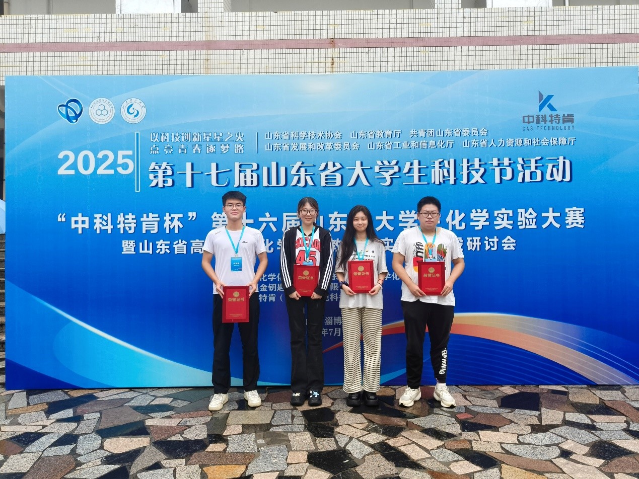 经过激烈角逐,公司选派的章佳凌、杨延彬同学获得一等奖,何明罡、刘亚杰同学获得二等奖。该成绩在山东省参赛高校中处于领先水平,这不仅是四位同学个人实力的出色展现,更是公司化学实验教学厚积薄发、育人成效卓著的有力证明!