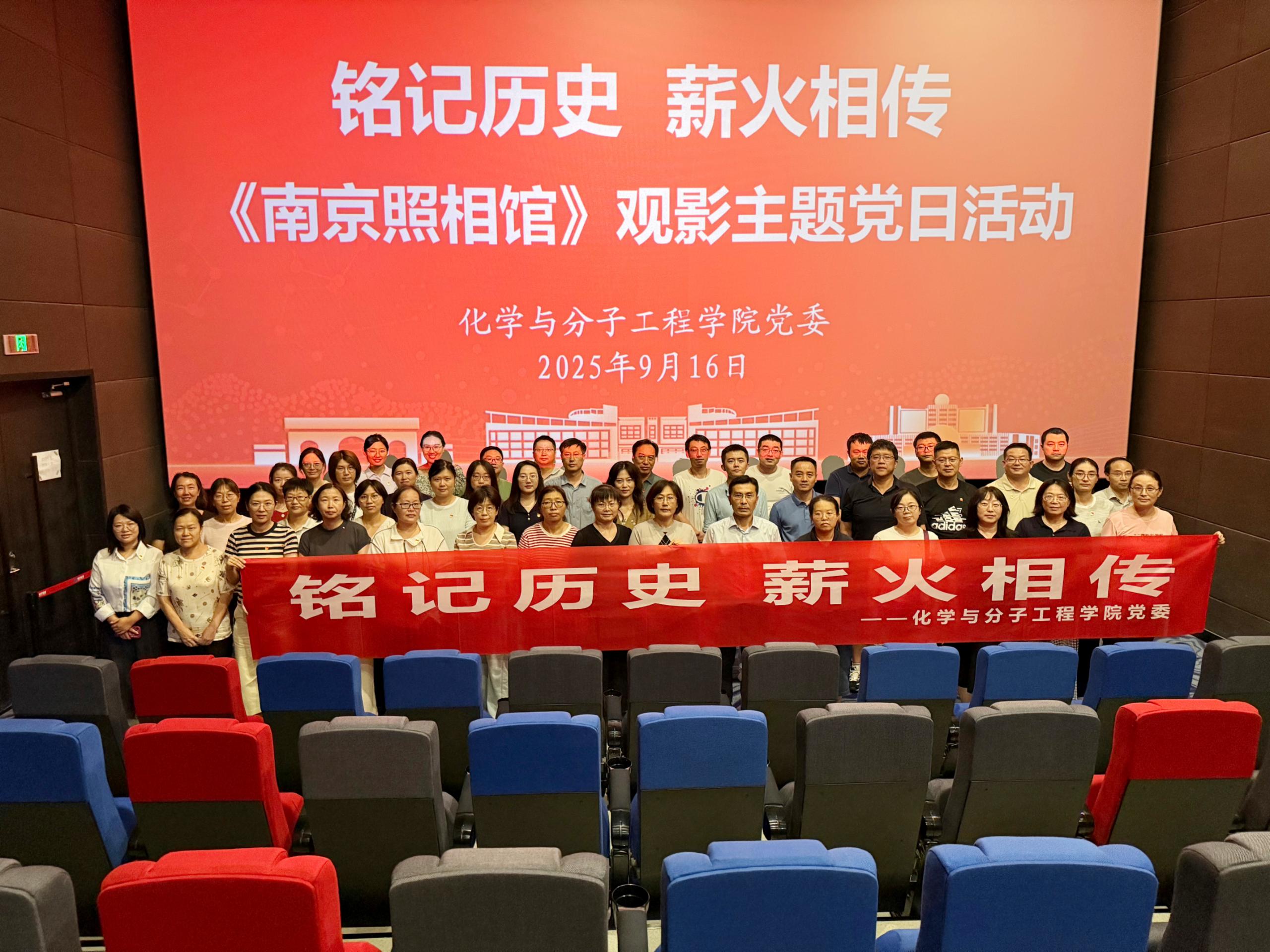 为纪念中国人民抗日战争暨世界反法西斯战争胜利80周年,弘扬伟大抗战精神,加强爱国主义教育,9月16日,公司党委组织化学教研室党支部、基础化学原理教研室党支部、教育部重点实验室党支部等9个党支部开展集体观影主题党日活动,共同观看历史题材电影《南京照相馆》。此次主题党日活动旨在通过观看爱国主义影片,引导党员教师铭记历史,凝聚力量,砥砺前行。公司党委书记肖强以化学教研室党支部普通党员身份参加活动。