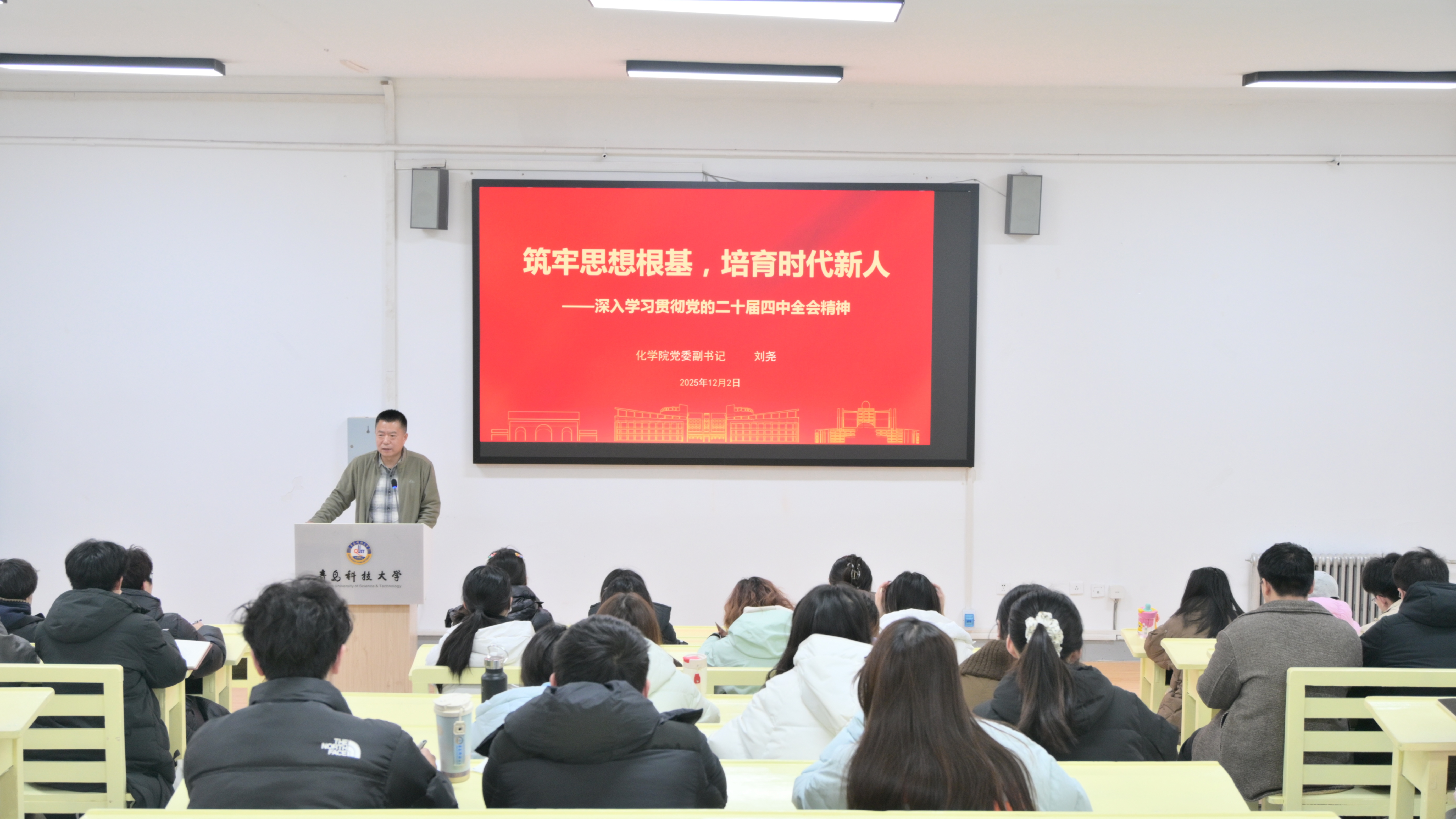 为深入学习贯彻党的二十届四中全会精神,引导员工党员切实把思想和行动统一到党中央决策部署上来,12月2日下午,公司在一政243开展“筑牢思想根基,培育时代新人——深入学习贯彻党的二十届四中全会精神”专题党课,党课由公司党委副书记兼副经理刘尧主讲,全体本科生党员参加。