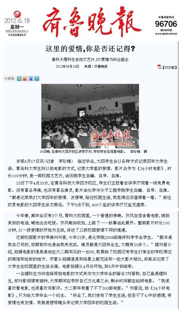 【齐鲁晚报】毕业季理科男用电影纪念爱情
