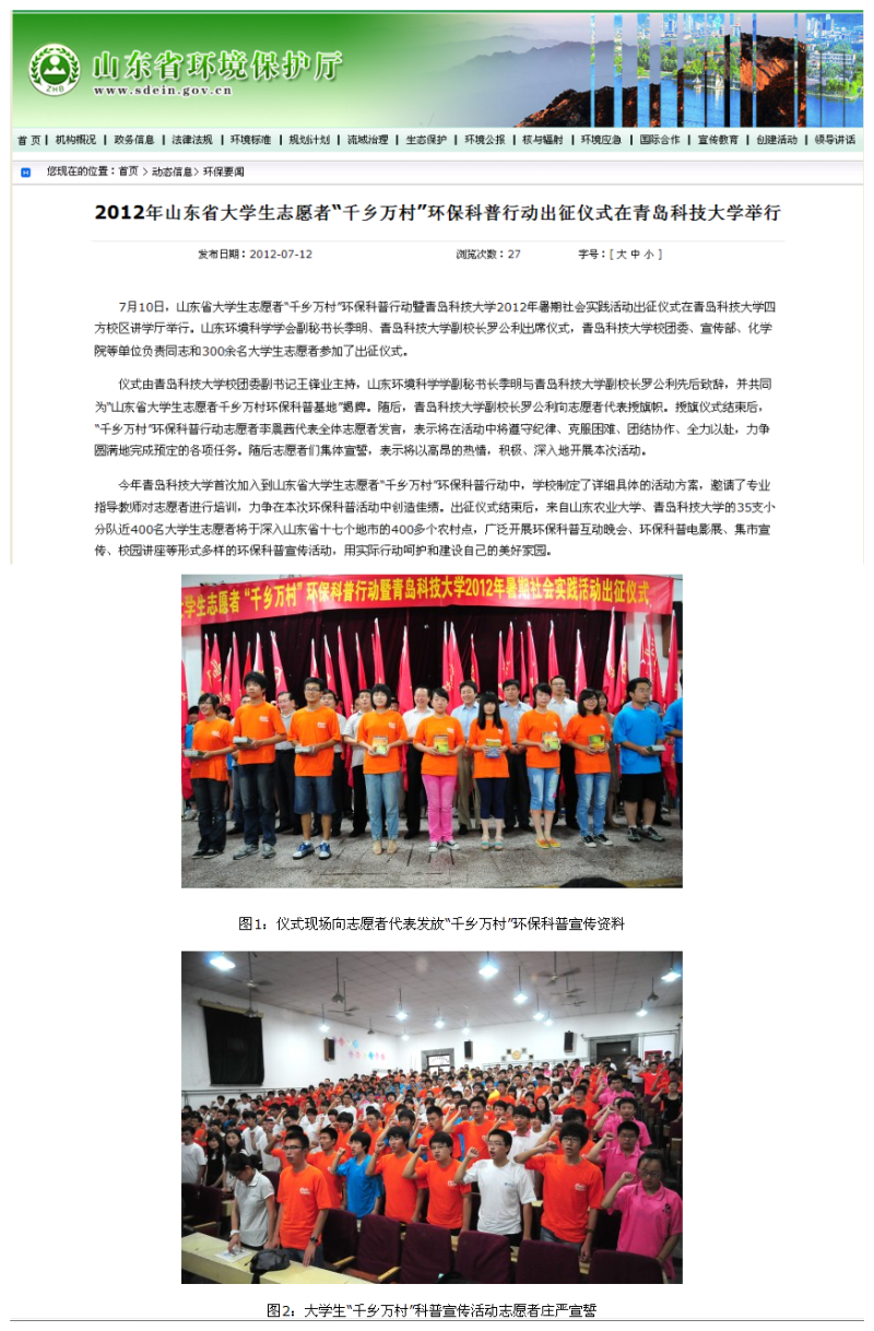 【山东省环保厅】2012年山东省老员工志愿者“千乡万村”环保科普行动出征仪式在bw必威西汉姆联官方网站举行