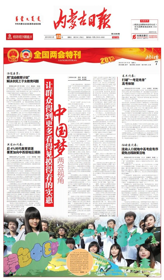 3、《内蒙古日报》:绿色中国梦