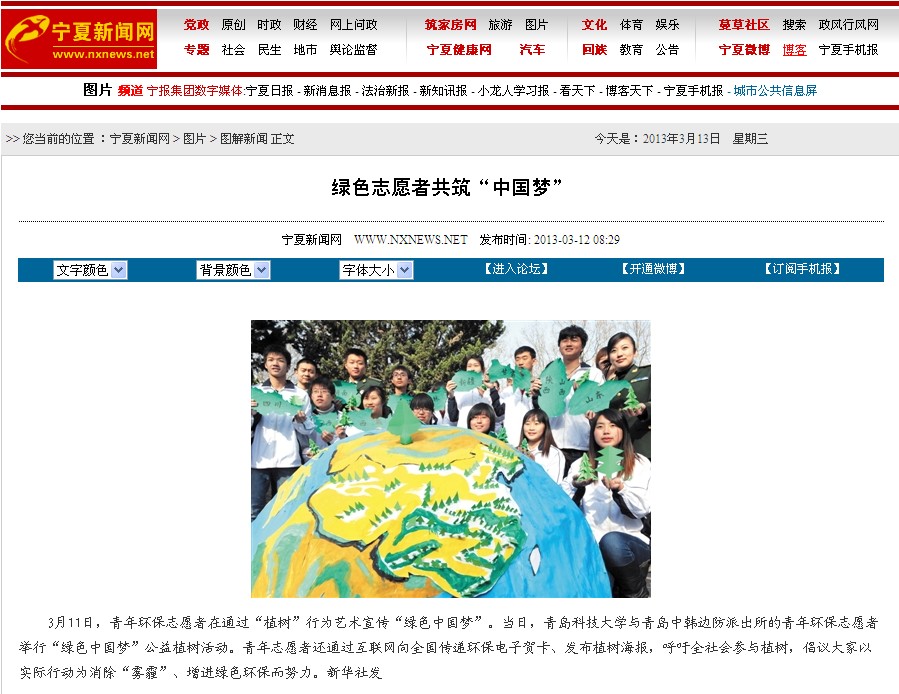 5、《宁夏新闻网》:绿色志愿者共筑中国梦