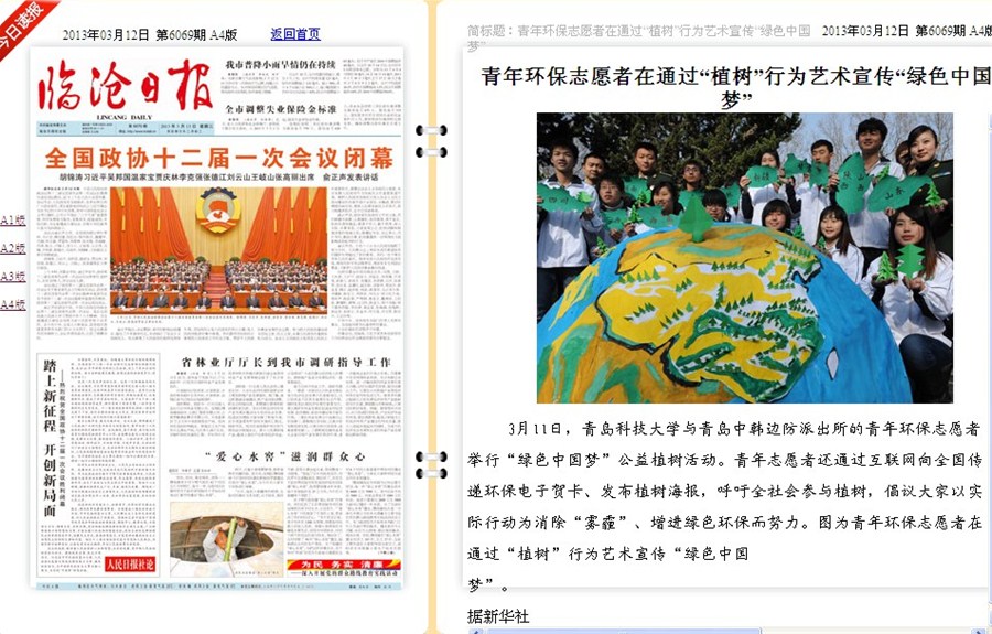 4、《临沧日报》:青年志愿者通过植树行为艺术宣传绿色中国梦