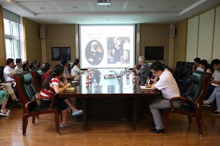 陈夫山首先对William C. Burnett教授的到来表示热烈欢迎。报告会上,William C. Burnett结合从事环境放射学和海底地下水排放(SGD)的生物地球化学过程研究的亲身经历,阐述了同位素为示踪剂量化SGD通量以及在大地、海洋和环境科学方面的广泛应用。最后,William C. Burnett教授耐心解答了参会人员所提问题,并就许多科研问题与老师们进行了深入而友好的讨论和交流。