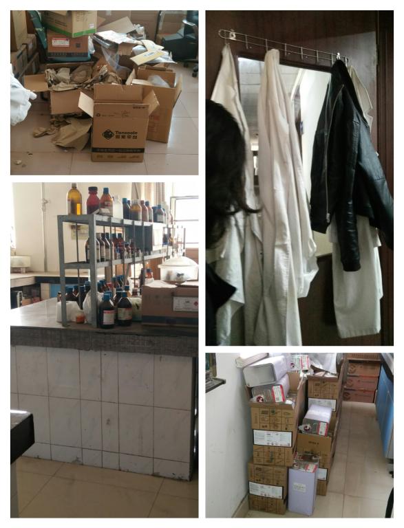 3.个别实验室内堆放太多试剂空瓶等杂物。
