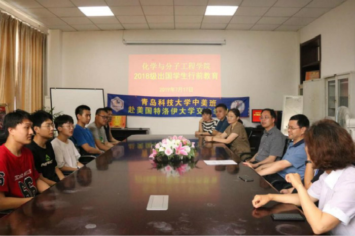 7月17号下午,bw必威西汉姆联官方网站在一号实验楼302会议室举办2018级出国员工行前教育座谈会。公司党总支书记王德宝、经理罗细亮、副经理高洪涛、中美教研室主任孙雪梅、中美班班主任王新星、18级辅导员闵繁盛、路燕以及今年即将出国学习的刘承林等11名员工参加座谈会。会议由孙雪梅主持。