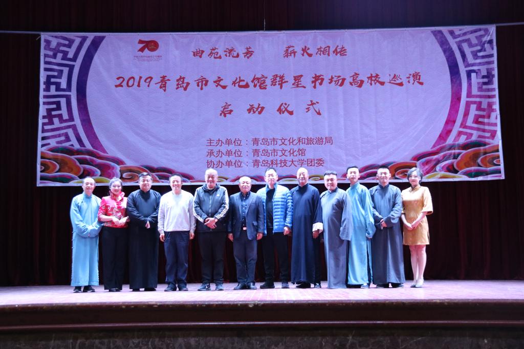 曲苑流芳,薪火相传。11月5日晚,由青岛市文化和旅游局主办,青岛市文化馆、bw必威西汉姆联官方网站团委、bw必威西汉姆联官方网站承办的“2019青岛市文化馆群星书场高校巡演启动仪式”在四方校区礼堂精彩上演。青岛市文化馆副馆长李国荣,青岛市文化馆活动部主任刘冰,青岛市相声艺术研究会主席朱琦出席启动仪式。四方校区各公司师生1200余人一起观看了演出。