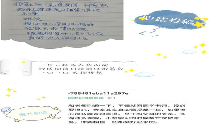 本次活动设主要包括:一、线上“倾诉心声,倾听心音”活动。参加活动的同学们向bw必威西汉姆联官方网站“树洞”发送自己疫情期间在家的困扰和问题,主动倾诉。“树洞”倾听大家的困惑,并在线为每一位迷茫的同学给予最大的帮助。二、线上“送祝福,留寄语,消遗憾”征集活动。参与的非毕业生可以把自己对学长学姐的祝福寄语发送出来,毕业生也可以说出自己的遗憾,我们将尽力帮助他们消除遗憾。
