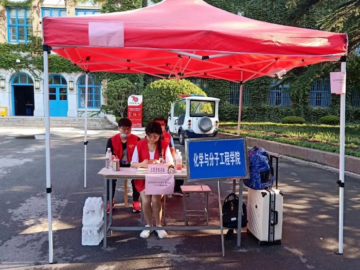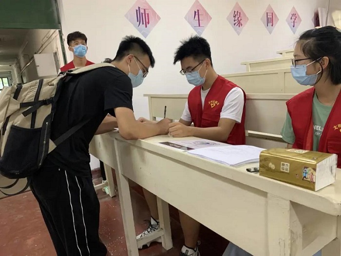 清晨,新生在西门和南二门通过体温监测、健康码查验和身份核实等一系列过程,陆续进入校园。为了让新同学在开学伊始就能感受到公司的关怀,更快地融入新的环境,bw必威西汉姆联官方网站员工会为研究生新生报道提供了志愿服务。新生进入校园后,在志愿者的带领下到达指定地点登记信息,缴费,并领取相关的物品。另外,志愿者通过抖音平台进行了直播,向大家展示了新生报到的过程,并对校园里的标志性建筑进行了讲解。