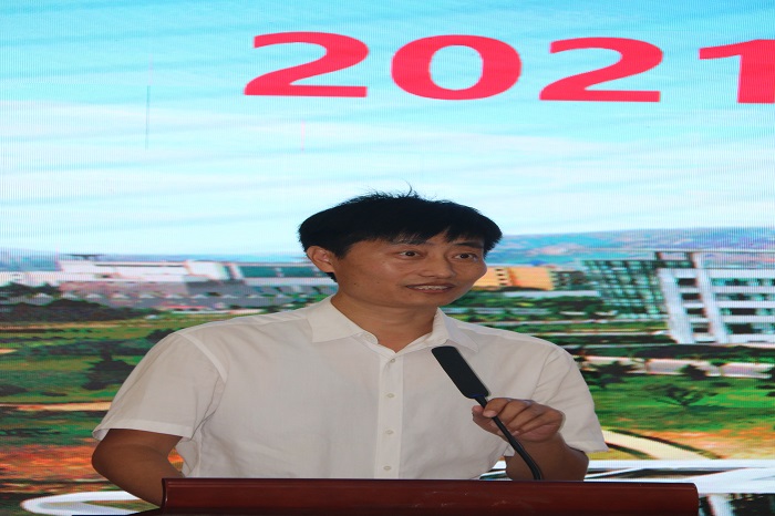 高洪涛介绍2017级员工教学实习工作并代表公司向毕业生代表发放就业加油包。