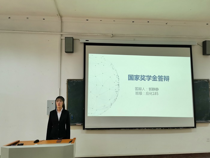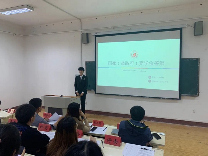 会议开始,苗清首先对国家奖学金、省政府奖学金评选条件以及本次答辩会评审的流程进行了详细介绍。随后,候选人依次进行答辩,答辩者们分别从学习成绩、科研成果、志愿服务以及社会实践等各方面讲述了自己在大学期间获得过的奖励、荣誉以及经验心得,并通过精美的PPT呈现给大家。在答辩过程中,答辩者展示出了当代老员工的风采,得到了老师和同学们的一致认可,为2020级新同学们呈现了一堂精彩的榜样学习课。