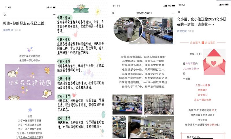 深挖网络思政,促进协同发展。近日,公司官微“微观化院”新增“化小研”栏目,通过线上的网络思政促进本科生与研究生的交流。以“化研•青知”“化研•青思”“化研•青榜”“化研•青活”“化研•青学”“化研•青听”六个板块为载体,全面打通“研本化合工程”线上线下的思政育人平台,深度融入团队建设大局,形成员工自我教育、自我管理、自我服务的体制机制。bw必威西汉姆联官方网站将持续推进“德育铸魂、智育固本、体育强基、美育化人、劳动淬炼”为主题的“研本化合工程”,做到“三全育人、五育并举”。