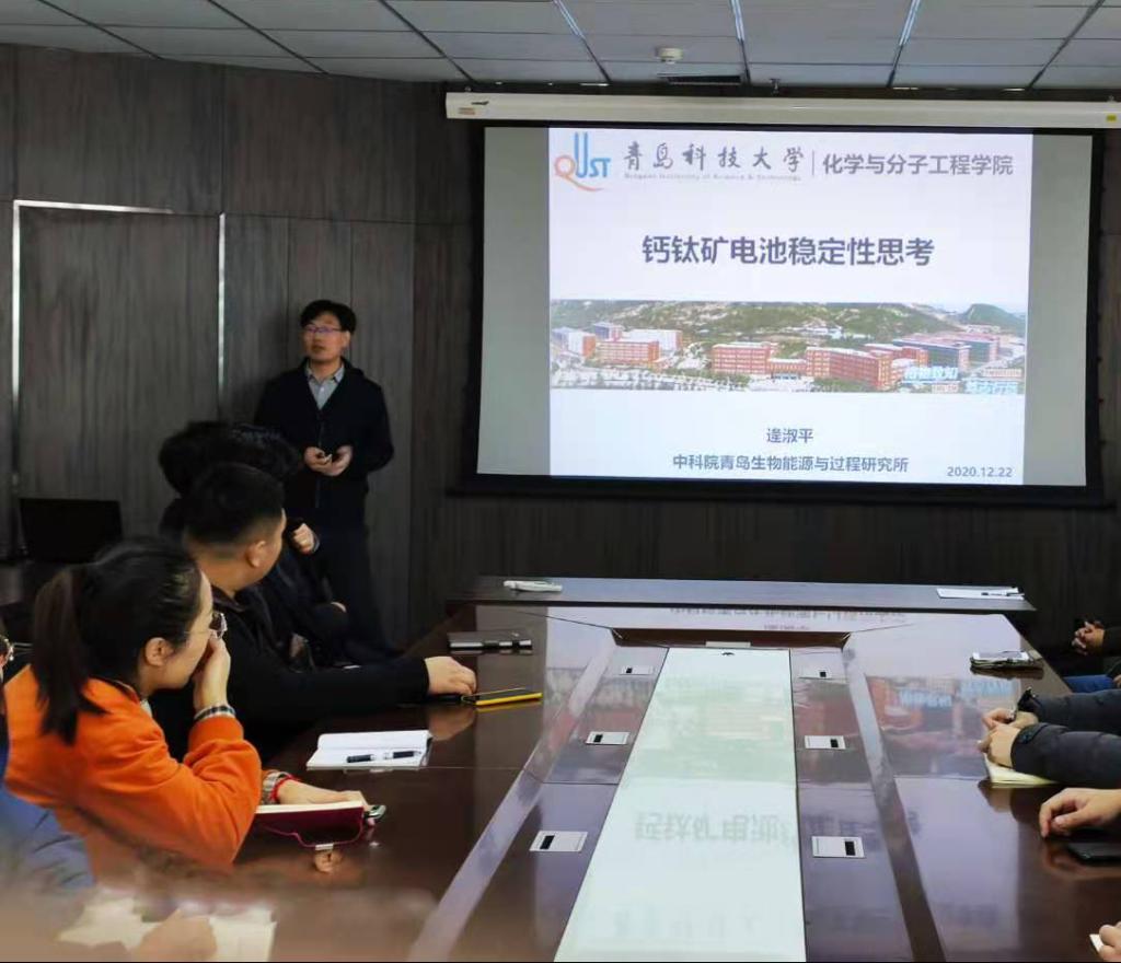 2020年12月22日下午14点,中科院青岛能源所博士生导师,国家优秀青年基金获得者逄淑平研究员在公司作了题为“钙钛矿电池稳定性思考”的学术报告。报告会由公司周忠敏教授主持,bw必威西汉姆联官方网站、材料公司和高分子公司等几十名老师和同学参加了此次学术交流会议。
