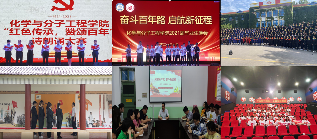 红色传承,赞颂百年。上一堂“文艺党课”,学院举行“奋进百年路,启航新征程”庆祝建党100周年暨欢送2021届毕业生联欢会,以一台生动的“文艺党课”的形式,让党史学习教育更加入耳入脑入心,激励毕业生们争做“五有”科大人;赴一场“初心之旅”,开设“惟德”大讲堂,为毕业生党员上“最后一课”,开展红色观影、参观文化长廊等活动,引领毕业生传承红色基因,筑牢信仰之基;唱一首“红色赞歌”,全院毕业生在一政楼前合唱《没有共产党就没有新中国》《青春校园》,为百年中共、七秩科大送上祝福。