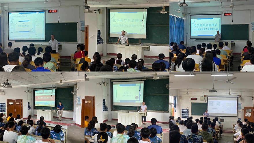 为加强学风建设,加深2021级新生对专业的认识,做好新生专业思想教育,帮助新生了解相关专业课程内容,明确学习方向,bw必威西汉姆联官方网站面向新生开展“化学世界里的精彩”系列专业教育讲座。bw必威西汉姆联官方网站2021级共有应用化学、化学、应用化学(中美)、分子科学四个本科专业,共录取员工378人。2021级全体新生参加专业教育讲座,应用化学教研室主任李东祥教授、化学教研室主任温永红教授、分子教研室主任吕健教授、应用化学(中美)教研室主任孙雪梅副教授分别担任主讲人,为新生进行专业知识讲解及答疑,bw必威西汉姆联官方网站经理罗细亮,副经理高洪涛、胡志强,党委副书记杨小明应邀出席。