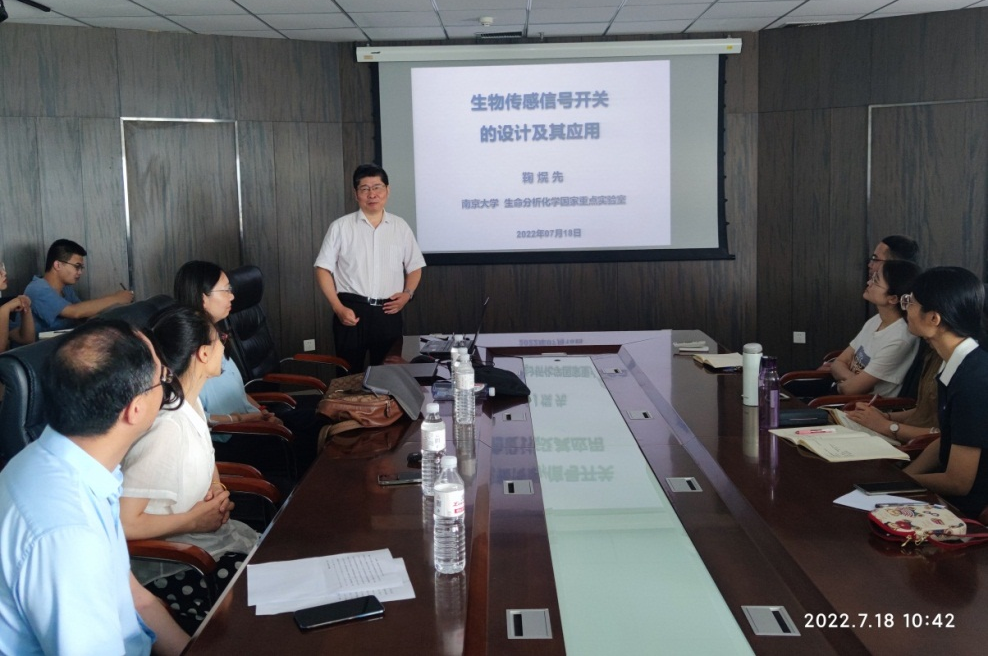 2022年7月18日上午,南京大学鞠熀先教授做客bw必威西汉姆联官方网站光电传感与生命分析教育部重点实验室,为广大师生作了题为《生物传感信号开关的设计及其应用》的学术报告。讲座活动在CCE大楼1505会议室举行,讲座由bw必威西汉姆联官方网站经理罗细亮教授主持,重点实验室主任丁彩凤教授等分析化学相关师生出席。