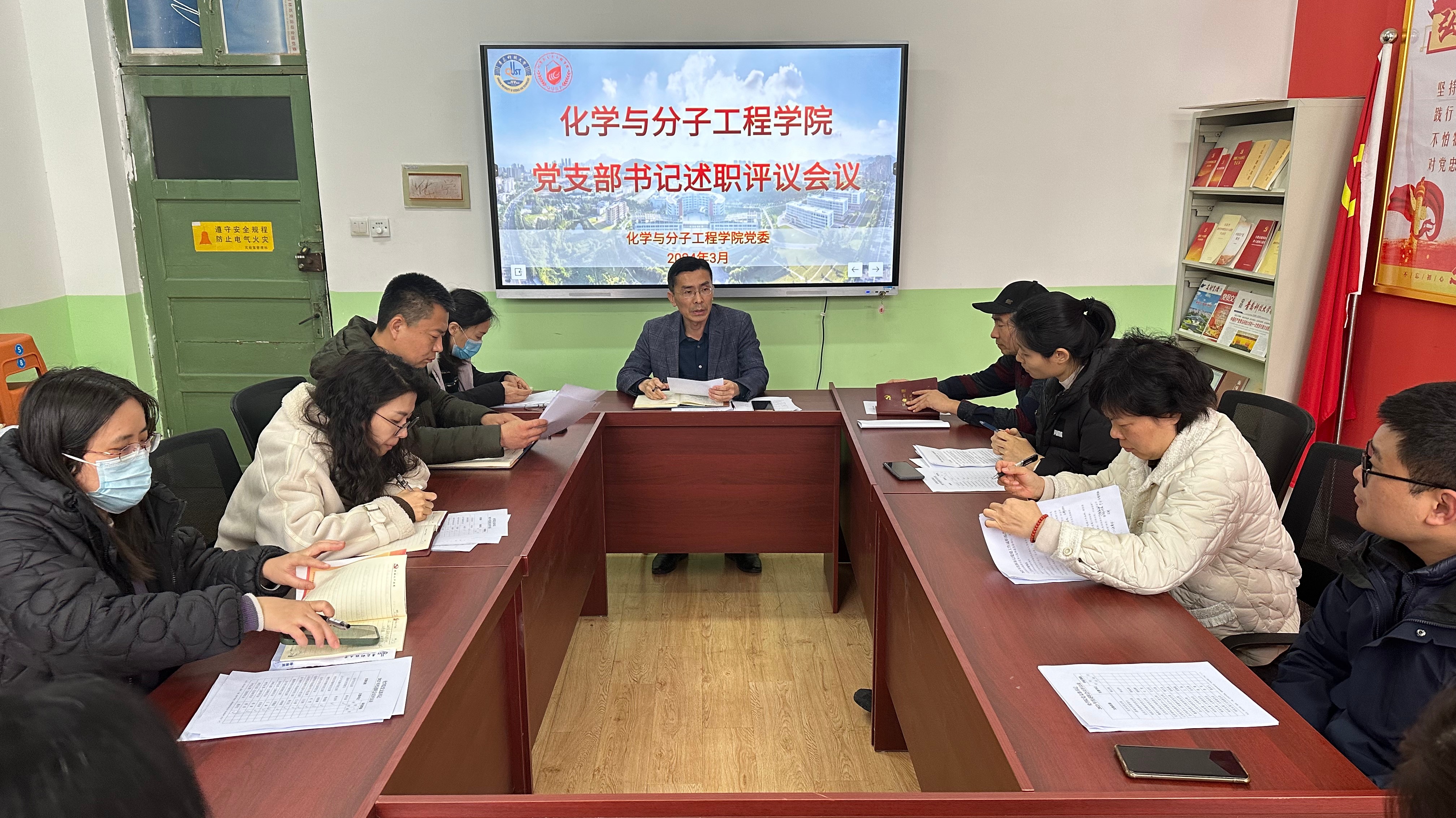化学系党支部、基础化学原理与应化中美教研室党支部、有机化学教研室党支部、物理化学教研室党支部、应用化学系党支部、山东省实验教学示范中心党支部、分子科学与工程教研室党支部、教育部重点实验室党支部8个党支部进行现场述职、化学学科实验服务中心党支部、办公室分团委党支部、5个员工党支部等7个支部进行书面述职。会上,8名党支部书记依次进行现场述职,各党支部书记结合过去一年党支部工作开展情况,全面梳理,深入剖析,围绕履行全面从严治党责任和抓党建工作,从主要工作情况、存在的问题及原因、下一步工作思路及整改措施等方面进行了述职。