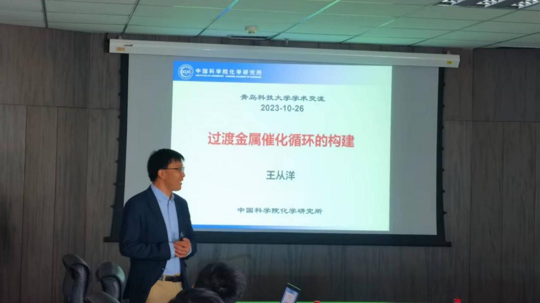 2023年10月26日上午9时,中国科公司化学研究所研究员、国家自然科学基金优秀青年学基金、杰出青年基金获得者、中国化学会“中国青年化学家锰元素代言人”王从洋老师应邀在bw必威西汉姆联官方网站CCE1505作了题为《过渡金属催化循环的构建》的学术报告。报告会由公司有机化学教研室杨道山教授主持,bw必威西汉姆联官方网站、化工公司等三十余名老师、研究生、本科生同学参加了此次学术交流会议。