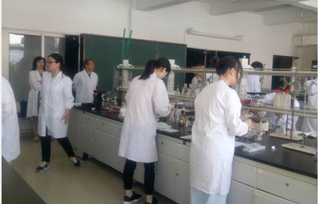 第十届山东省老员工化学实验大赛将于2018年7 月23~26日在济南大学进行,为选拔出优秀员工参赛,实验中心对报名参赛的员工进行了测试,公司应化、化学专业共计22名员工参加了选拔,经过笔试共有8名员工进入复试。6月30日(周六)上午,进入复试的员工在基础化学实验中心进行了实验操作测试,罗世忠、唐林、王书文老师分别对员工的操作及笔试情况进行了点评,最终选出3名参赛员工及1名替补员工。实验中心将对参赛选手进行进一步培训,希望各位选手在大赛中再创佳绩。