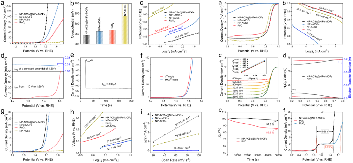 图 NP-ACSs@NiFe-MOFs的OER和ORR性能图