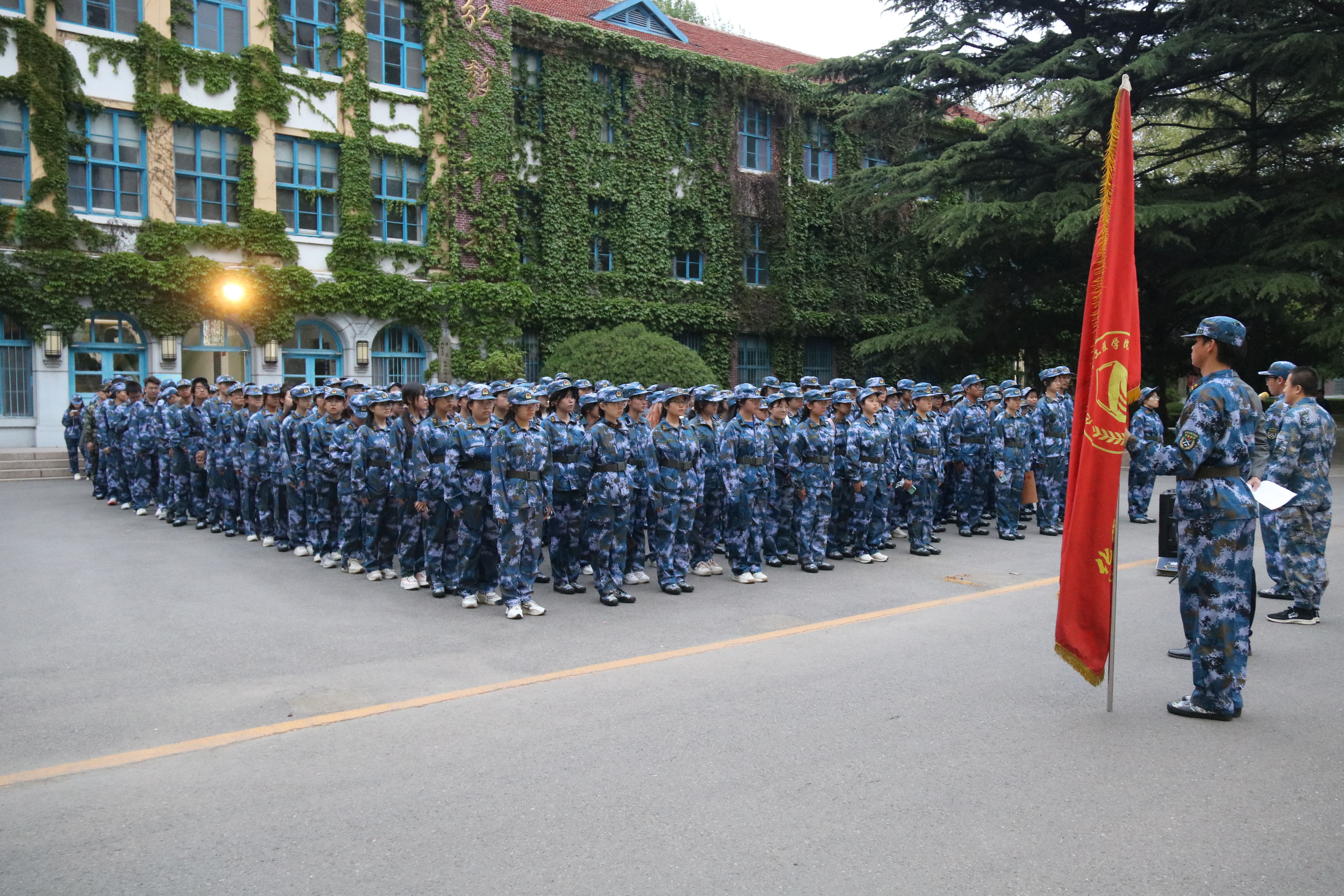 杨小明在致辞中做了“捍卫军人的荣誉感”的主题演讲,以抗美援朝志愿军英勇顽强的事迹为切入点,带领同学回顾了我军的光辉历史,勉励同学们要向革命先辈们学习,敢于吃苦、坚韧顽强,进一步提升集体凝聚力与战斗力。并就做好军训工作提出三点要求:一是提高思想认识,严格要求自己;二是强化国防意识,培育纪律观念;三是筑牢理想信念,弘扬集体主义精神。