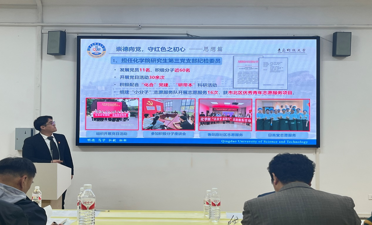 会议初始,主持人徐鑫宣读国家奖学金的评选条件和评审细则,确保本次答辩过程公开、公平、公正。随后,28名答辩候选人通过PPT演讲的形式,分别从思想品德、学习成绩、科研竞赛、社会实践等方面进行全面而深入的展示。