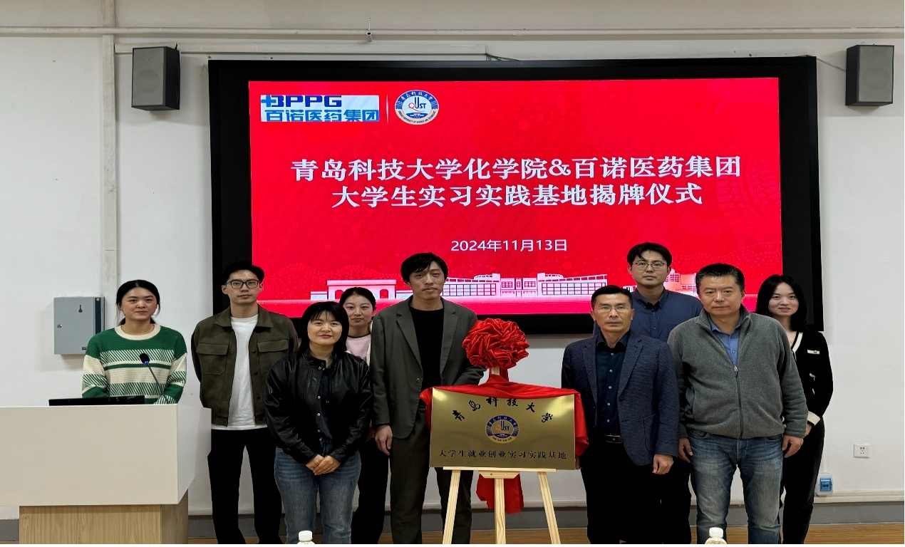 百诺医药集团人力资源中心总监邢望、研究院人力资源部经理王倩倩、化学与分子工程公司党委书记肖强、党委副书记兼副经理刘尧、学工办副主任兼团委副书记陶亚亚,以及各位辅导员代表如程丽老师、王森老师、昝祺祺老师、刘涛老师、马晓风老师、徐鑫老师等出席了大赛并见证了实习基地的揭牌仪式。