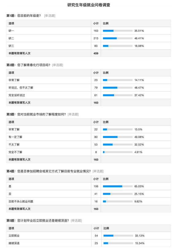 活动伊始,研究生会权益部精心准备并发放了调查问卷。随后,广泛收集了同学们对于就业问题的关注点和意见。这一举措不仅为同学们提供了一个表达就业困惑和期望的平台,也为公司今后的就业指导工作提供了宝贵的数据参考。