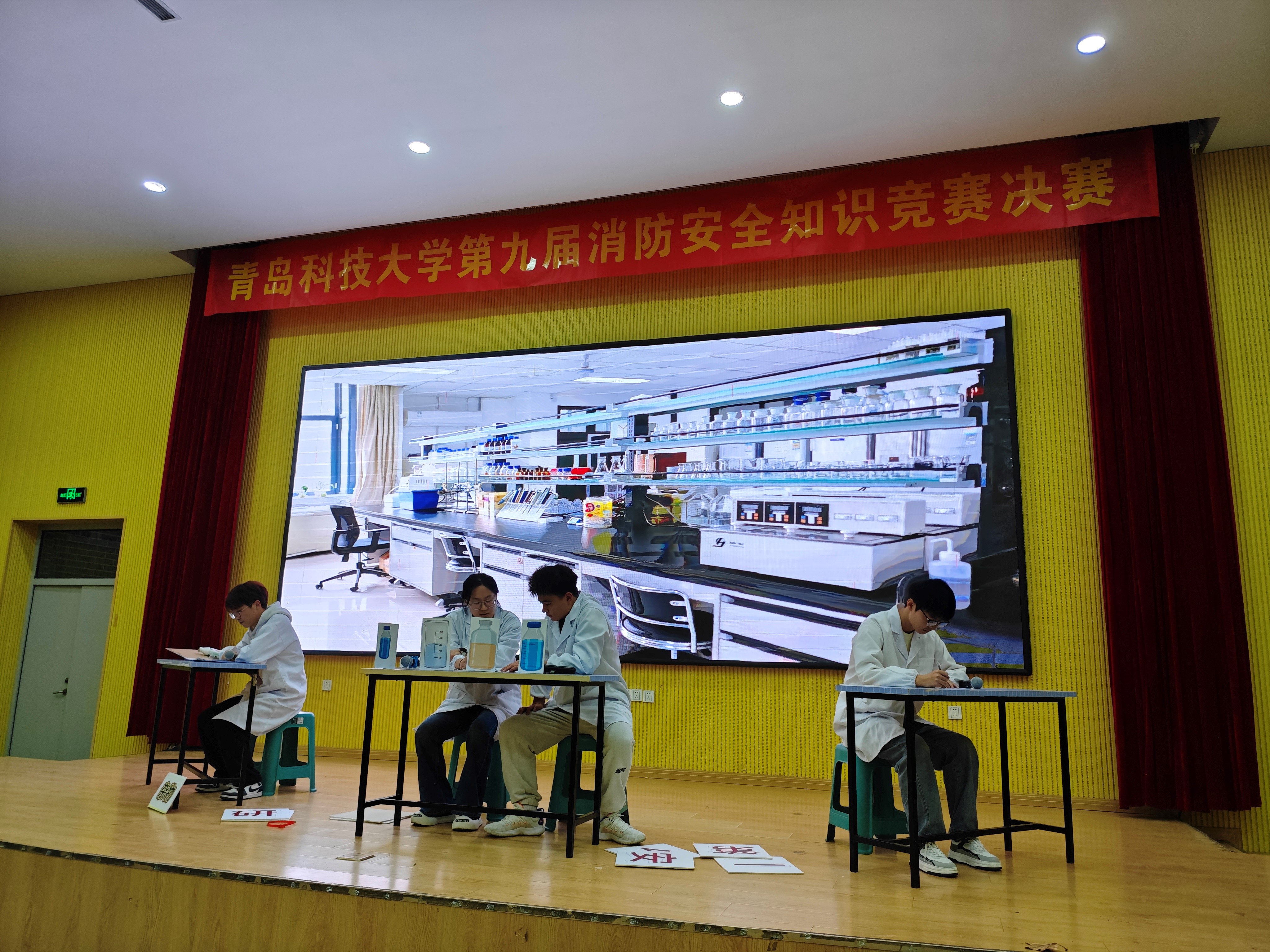 情景剧展示环节则是本次竞赛的一大亮点,孙友浩、刘栩宁、宋宁、方民念和兰云天五位同学默契配合。他们以“逆时实验室”为情景剧主题,模拟实验室发生火灾爆炸的场景,经过五次循环与整改来阻止爆炸的发生,最后实验室终于迎来了安全的曙光。