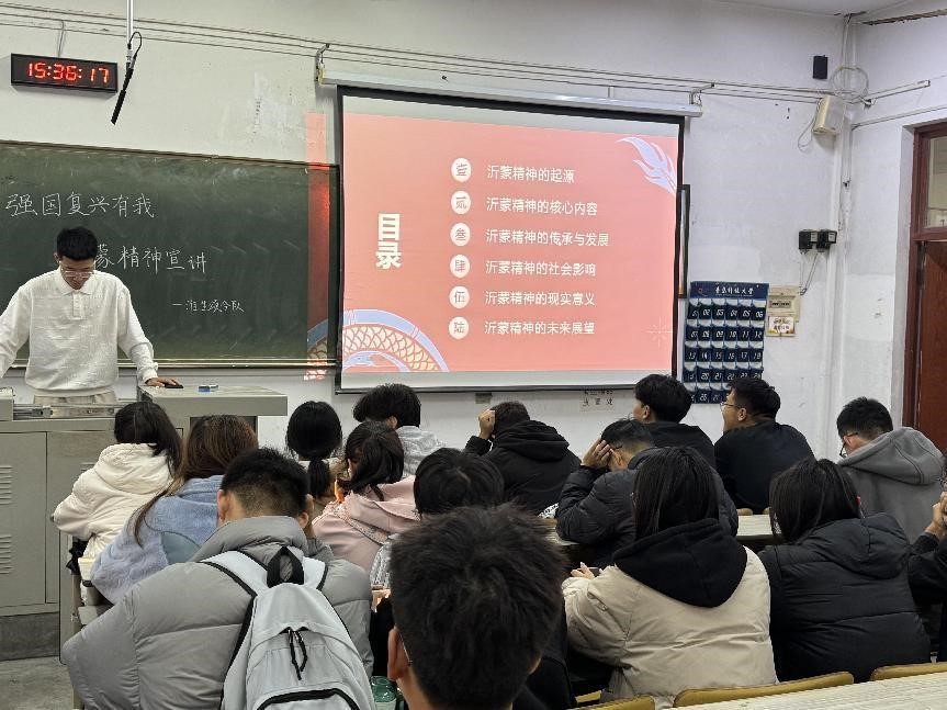此次沂蒙宣讲团的活动,在班级内引起了强烈反响。同学们纷纷表示,这场宣讲让他们对沂蒙精神有了更全面、更深入的理解,今后将以实际行动传承和弘扬沂蒙精神,在学习和生活中勇于担当、砥砺前行,让红色基因在青春岁月中绽放光彩,为实现中华民族伟大复兴的中国梦贡献自己的力量。(通讯员:陶亚亚)
