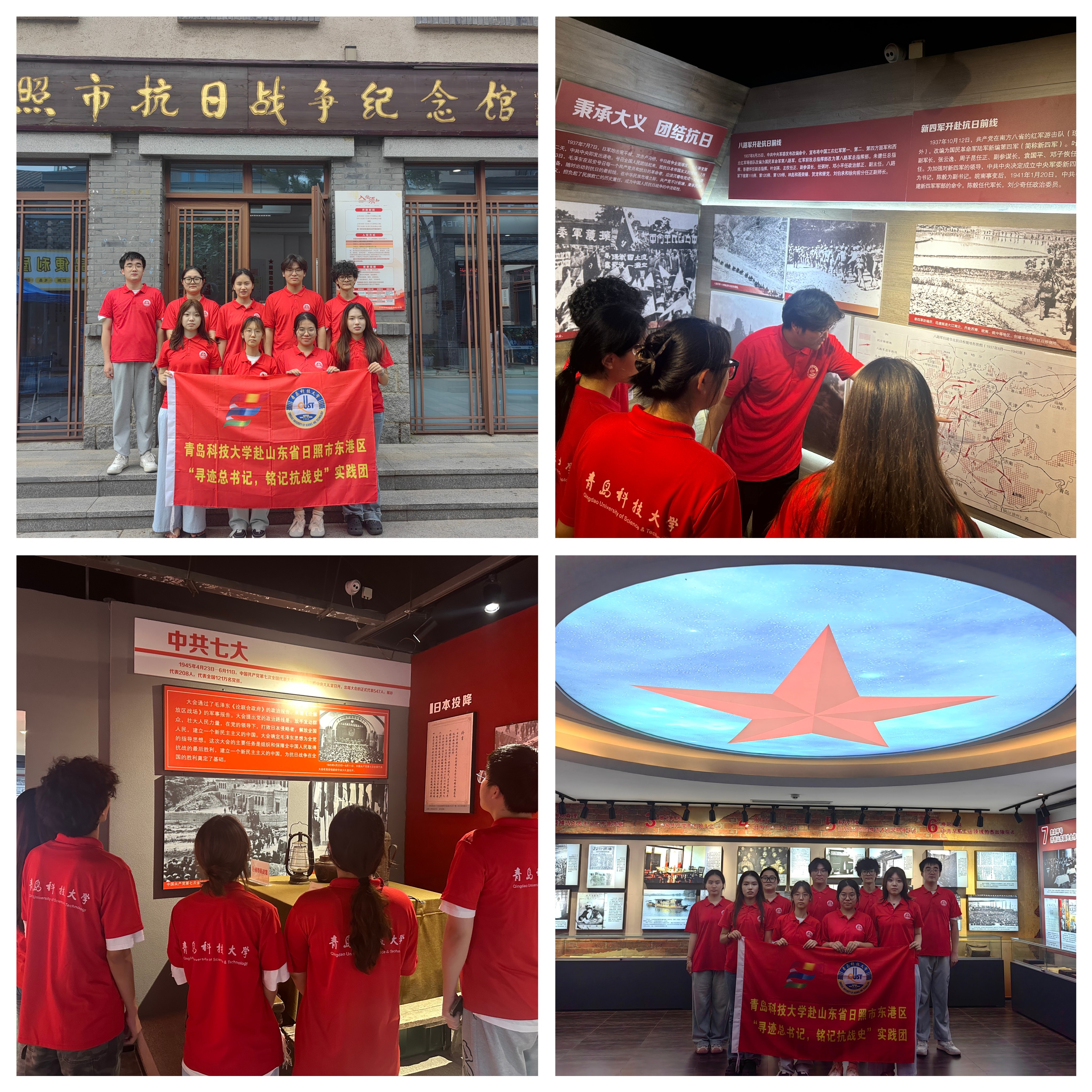 实践团的最后一站,是日照抗日战争纪念馆。展馆以日照本土抗战历程为主线,通过地方党组织重建档案、抗日武装斗争纪实、军民联防口述史料及历史影像等珍贵资料,系统梳理了从烽火初燃到最终胜利的全过程,全面展现了日照儿女在党的领导下,从自发抗争到有组织斗争的觉醒之路。在展柜前,成员们久久伫立,从 “宁死不当亡国奴” 的呐喊,到 “军民鱼水共抗敌” 的协作,成员们深刻体悟到 “用血肉筑起新的长城” 在齐鲁大地的生动诠释。