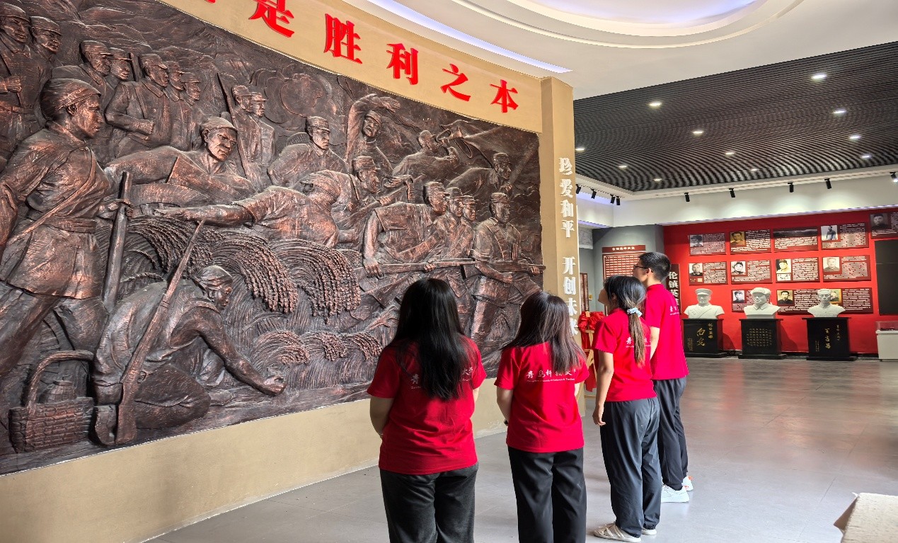 随后,团队前往齐禹抗战纪念馆进行深入学习。通过馆内丰富的历史图片、实物展陈及场景复原,队员们系统学习冀鲁边区军民在中国共产党领导下,同仇敌忾、不畏强暴、浴血奋战的艰苦卓绝斗争史。一段段感人至深的故事,一件件斑驳珍贵的文物,生动诠释伟大抗战精神的丰富内涵。队员们边走边看,边听边思,在与历史的对话中,深刻体悟到今日国家富强、民族复兴的来之不易,进一步增强了历史责任感和使命感。