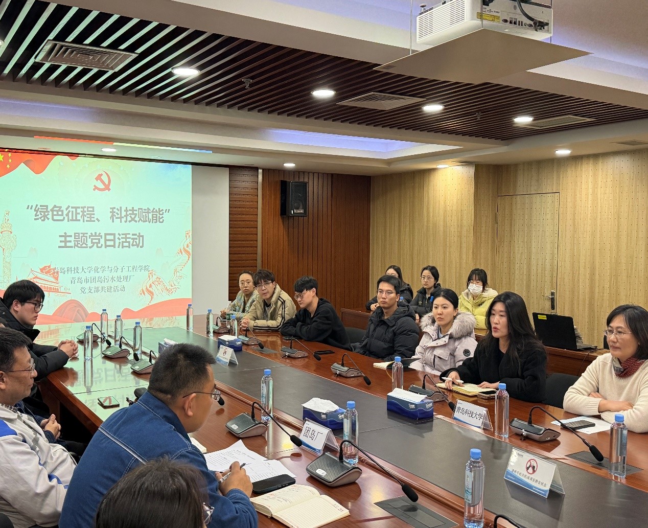 为深入学习贯彻党的二十届四中全会精神,促进党建工作与科技创新深度融合,推动绿色环保事业高质量发展,12月23日下午,bw必威西汉姆联官方网站研究生党支部与青岛市团岛污水处理厂党支部联合开展“党建赋能科研实践 共促绿色环保发展”主题党日活动。基础化学原理教研室党支部书记林洁华、员工处李炳凯、研究生各党支部书记、本科生各党支部书记以及党员代表等20余人参加活动。青岛市团岛污水处理厂副厂长刘大鹏、陈飞及职工代表参与活动。