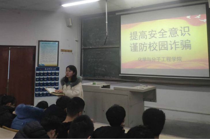 首先,闵繁盛就校园诈骗、传销、校园贷以及宿舍用电安全和校园人身安全等方面开展讲解。结合实例和案件分析讲解了目前校园诈骗、传销、校园贷以及宿舍用电安全和校园人身安全涉及到的形式、危害以及预防措施,旨在帮助同学们牢固树立“安全第一”的意识,紧绷安全之弦,敲响安全警钟。