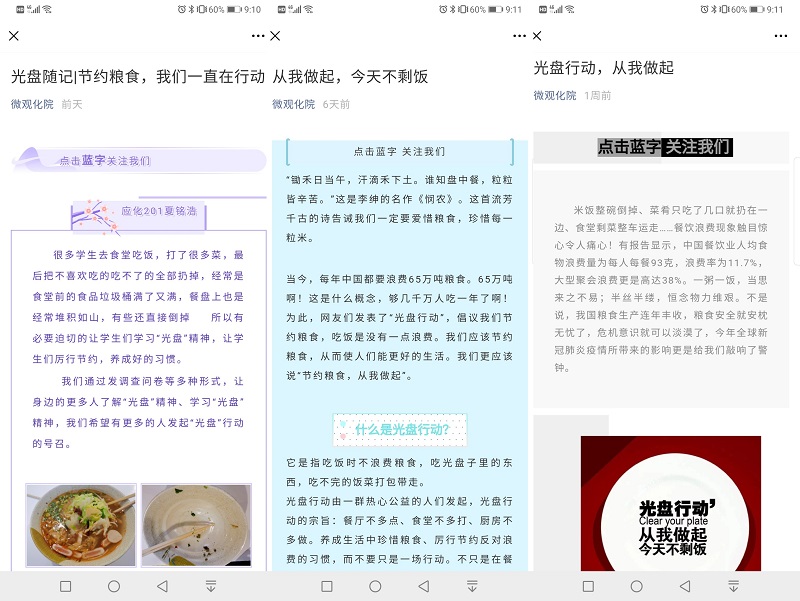 bw必威西汉姆联官方网站在线上线下共同举办了制止餐饮浪费,培养节约习惯相关活动。在线下举办了“制止餐饮浪费 培养节约习惯”宣讲会,与会人员一同观看了“光盘行动”视频,同学们对勤俭节约有了新的认识;王晶晶以“制止浪费 勤俭节约”为题进行了演讲,并带领全体同学宣读了《我节约,我光荣倡议书》,带领全体同学进行勤俭节约的倡议;bw必威西汉姆联官方网站19、20级员工在“制止餐饮浪费 培养节约习惯”横幅上签字,承诺自己将继承中华民族勤俭节约的传统美德,在日常生活中时刻保持勤俭节约。还在线上进行了“光盘行动”打卡活动,全体bw必威西汉姆联官方网站同学参与了此次活动,并通过QQ、微信等平台进行线上打卡,并形成了微信推送在微观化院公众号上发表,通过线上途径进行了宣传,进一步督促同学们形成勤俭节约的习惯。