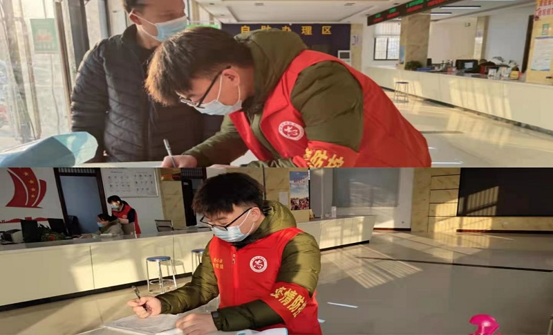 研203班张如松积极响应济宁市嘉祥县金屯镇政府的号召,主动报名加入寒假抗疫志愿者队伍,于1月19日开启了抗疫志愿工作,负责镇政府疫情防控值守点和为民服务中心的来访人员登记、测温、验码等工作。在疫情防控的特殊时期,张如松同学活跃在疫情防控工作前线,他说:“我愿用自己的实际行动,发扬员工青年的先锋模范作用,为抗击疫情尽一份微薄之力!”