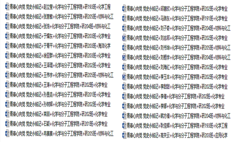 化院研究生们在学习党史中感悟中国共产党的辉煌伟业和红色精神,进一步展现青春风采。回望百年党史,感受沧桑巨变,感悟艰苦卓绝,坚定理想信念。同学们妙笔生花,动情讲诉建党百年来令人印象深刻的故事,分享自己学习党史的心得,以文字的形式抒发自己对党的真挚情感。