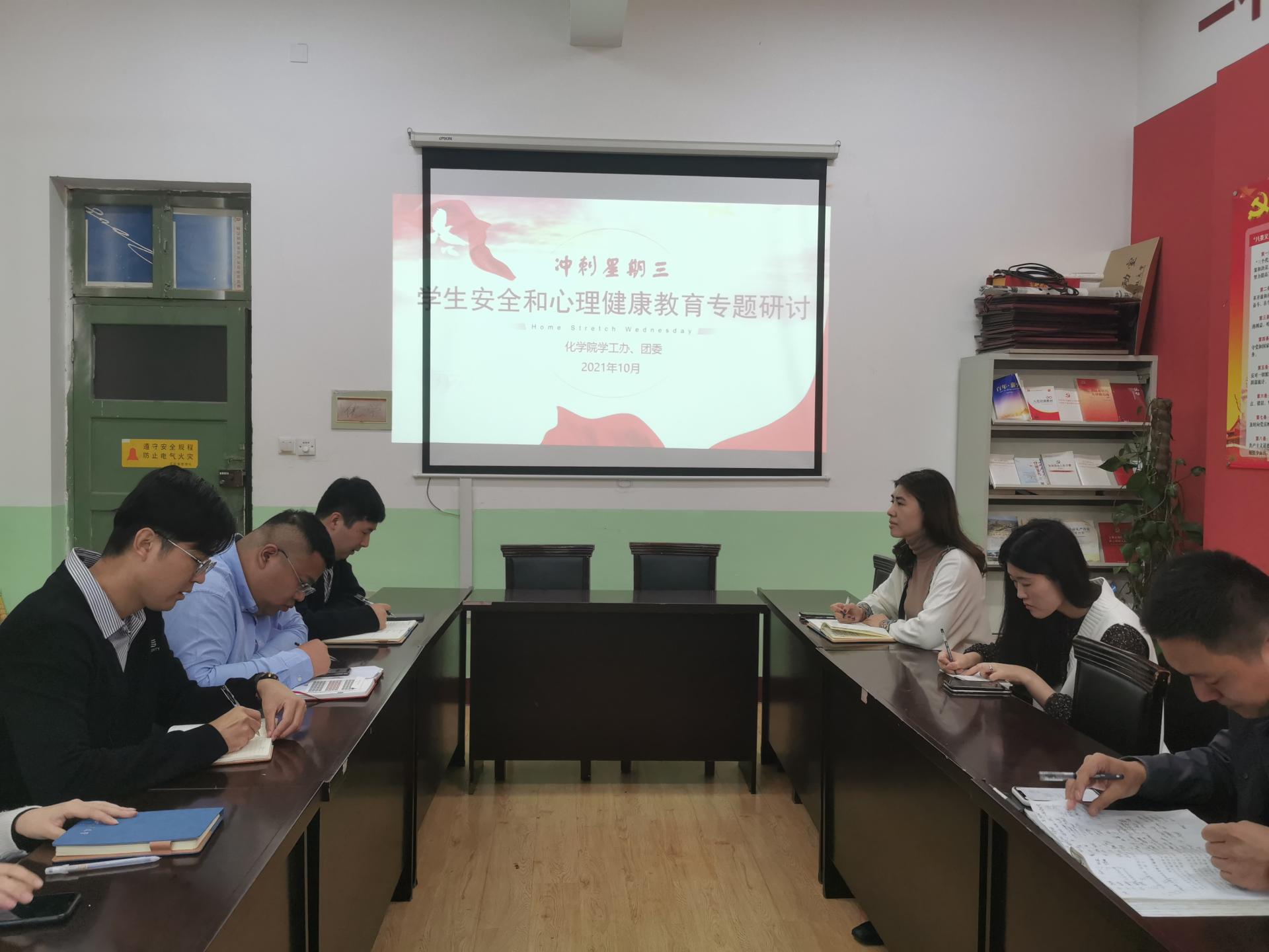 为进一步提升员工心理健康工作的针对性与有效性,加强员工心理健康素养,10月6日上午bw必威西汉姆联官方网站学工办组织开展冲刺星期三--员工安全和心理健康教育研讨会,bw必威西汉姆联官方网站全体专兼职辅导员参与了此次会议,会议由团委书记刘施施主讲。