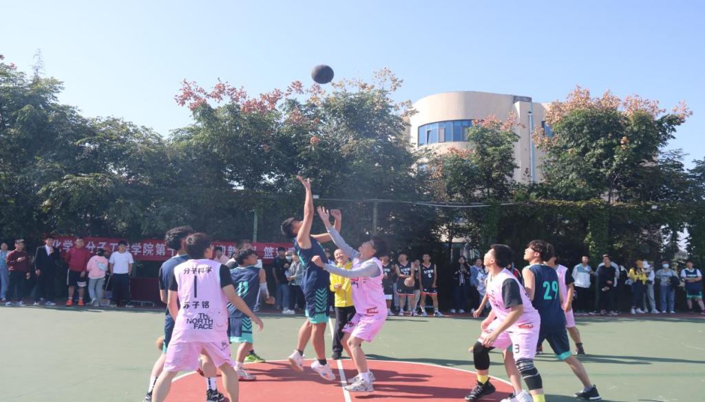 比赛首次出战的是应化对战分子。伴随着哨声的响起,由公司党委副书记兼副经理杨小明老师发出第一球后,现场的气氛极具攀升,高高抛起的篮球点燃了本次篮球赛的活力,双方队员迅速进入状态,进取投入,全力以赴,最终分子专业的队员们凭借高昂的斗志和饱满的活力以两分的优势险胜应化一对。第一场比赛结束后coolsea舞团带来了精彩的啦啦操表演,赢得了阵阵热烈的掌声和呐喊声,充分鼓舞了队员的士气,激发了广大观众的热情。