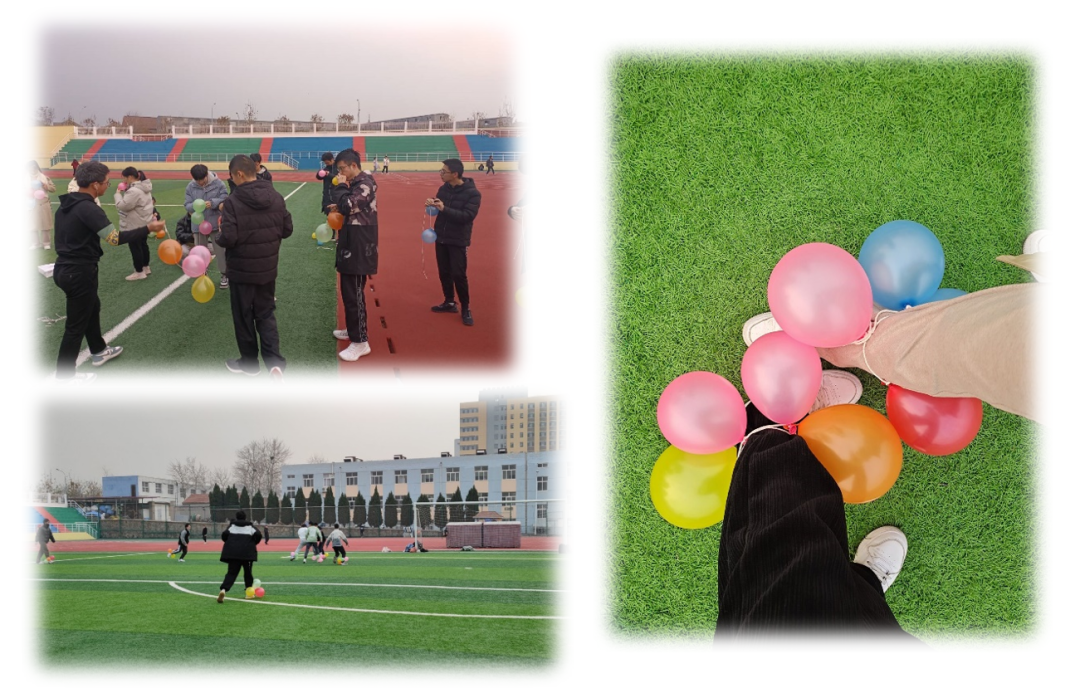 首先,通过踩气球环节活跃气氛,让同学们放松起来。每个同学都绑有四个气球,于自己而言代表四种积极的老员工状态——乐观向上、青春洋溢、自信自强、朝气蓬勃;别人会踩到我们的气球,代表着生活中总存在一些事情可能会打破我们良好的状态,但为尽量避免这些伤害,我们既应该小心保护自己的快乐,更应该用快乐感染他人、温暖他人。同时,通过踩气球环节,同学们在气球爆破声中,让烦恼、失落、消极暂时烟消云散。