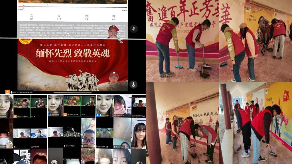 首先举行了“网上祭英烈”活动,团支书抓住契机对同学们进行革命传统教育、爱国主义教育和感恩教育,激发同学们对革命先烈的深深悼念之情,使得同学们更加珍惜现在的学习条件,努力学习,牢固掌握科学文化知识。其次,同学们自己通过自媒体平台了解一些在抗战疫情期间的“逆行英雄”,并分享了英勇献身烈士的感人事迹、重要贡献。陈雨情同学分享:“确诊为患有渐冻症的张定宇医生是武汉市金银潭医院的经理,其医院最早接诊新冠并收冶全部重症和危重症患者。张经理不顾自身病痛,不顾亲人患上新冠,毅然决然投身一线工作,被评为2021年十大感动中国人物。最后,开展“洒扫长廊,重走英雄路”文明清明志愿者清扫活动,组织同学们对文化长廊进行清理等工作,以实际行动表达对先辈的缅怀。