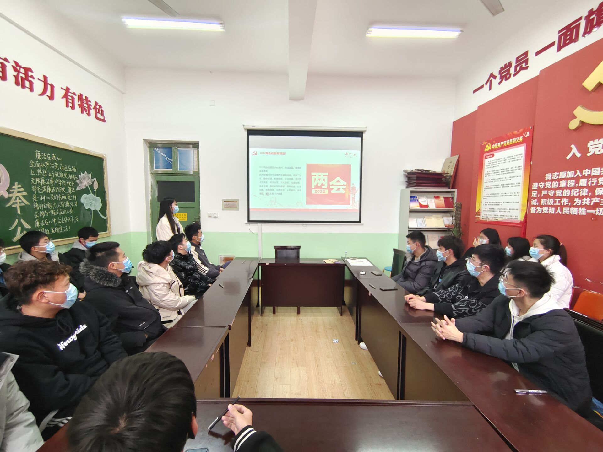 首先,团支书说明本次团会的主题思想及意义,介绍了两会的相关知识,带大家深入了解两会的历史、背景、发展等相关内容,强化了同学们的政治素养。
