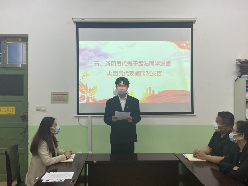 化学213于孟浩作为新团员代表发言,他表示,在建团百年之际能够加入中国共产主义青年团倍感光荣,今后将严格要求自己,时刻记住团员身份,坚定理想信念,用奋斗书写青春的壮丽篇章!随后全体成员共同观看习近平总书记在庆祝中国共产主义青年团成立100周年大会上的重要讲话。