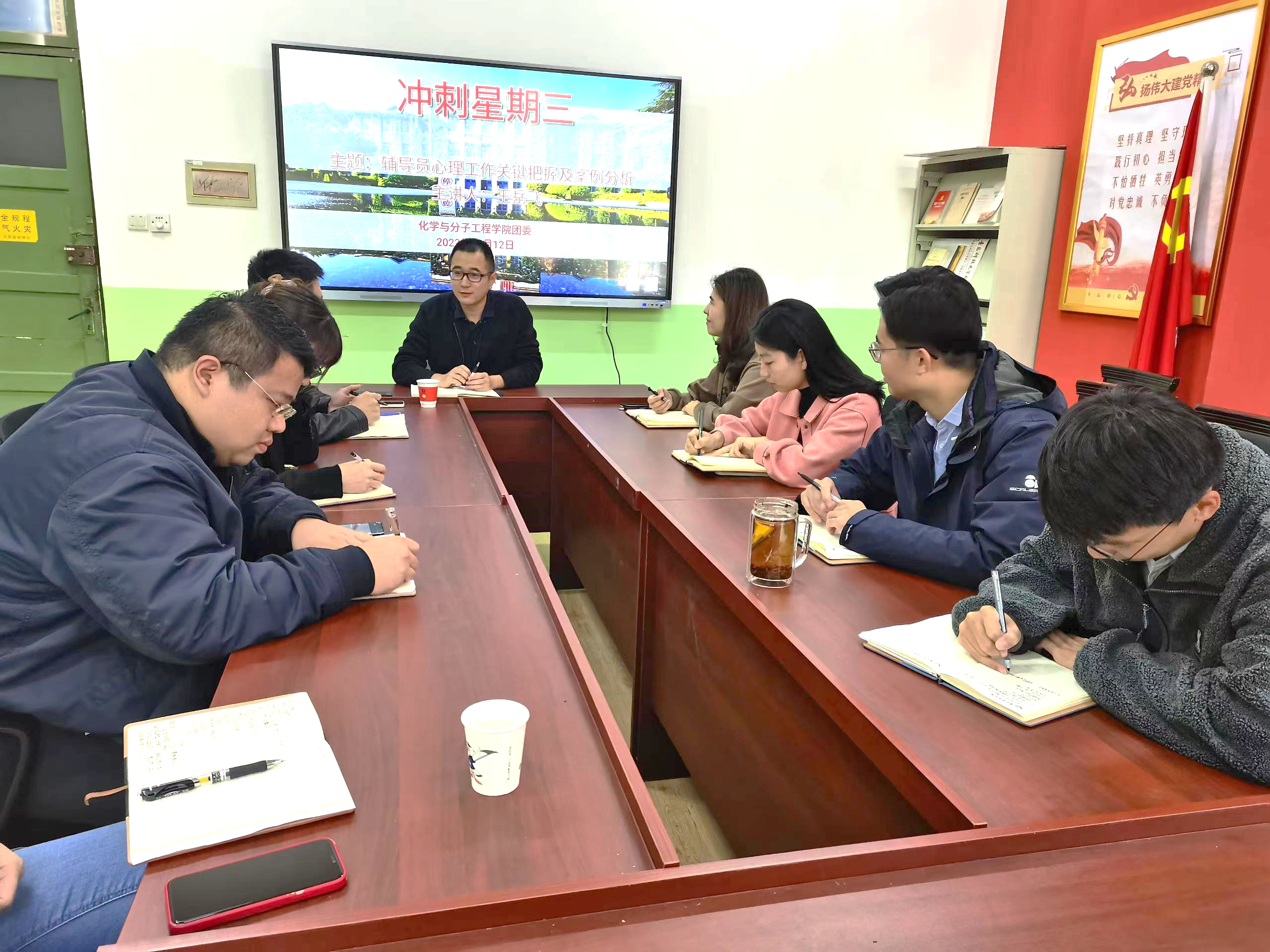 为强bw必威西汉姆联官方网站辅导员队伍体系建设,落实公司《2022年秋季学期辅导员素质能力提升方案》, 10月12日,bw必威西汉姆联官方网站在党建活动室开展“冲刺星期三”活动。本次“冲刺星期三”以心理健康教育为主题,由心理中心王岳飞老师担任主讲嘉宾。公司全体辅导员老师参加培训。