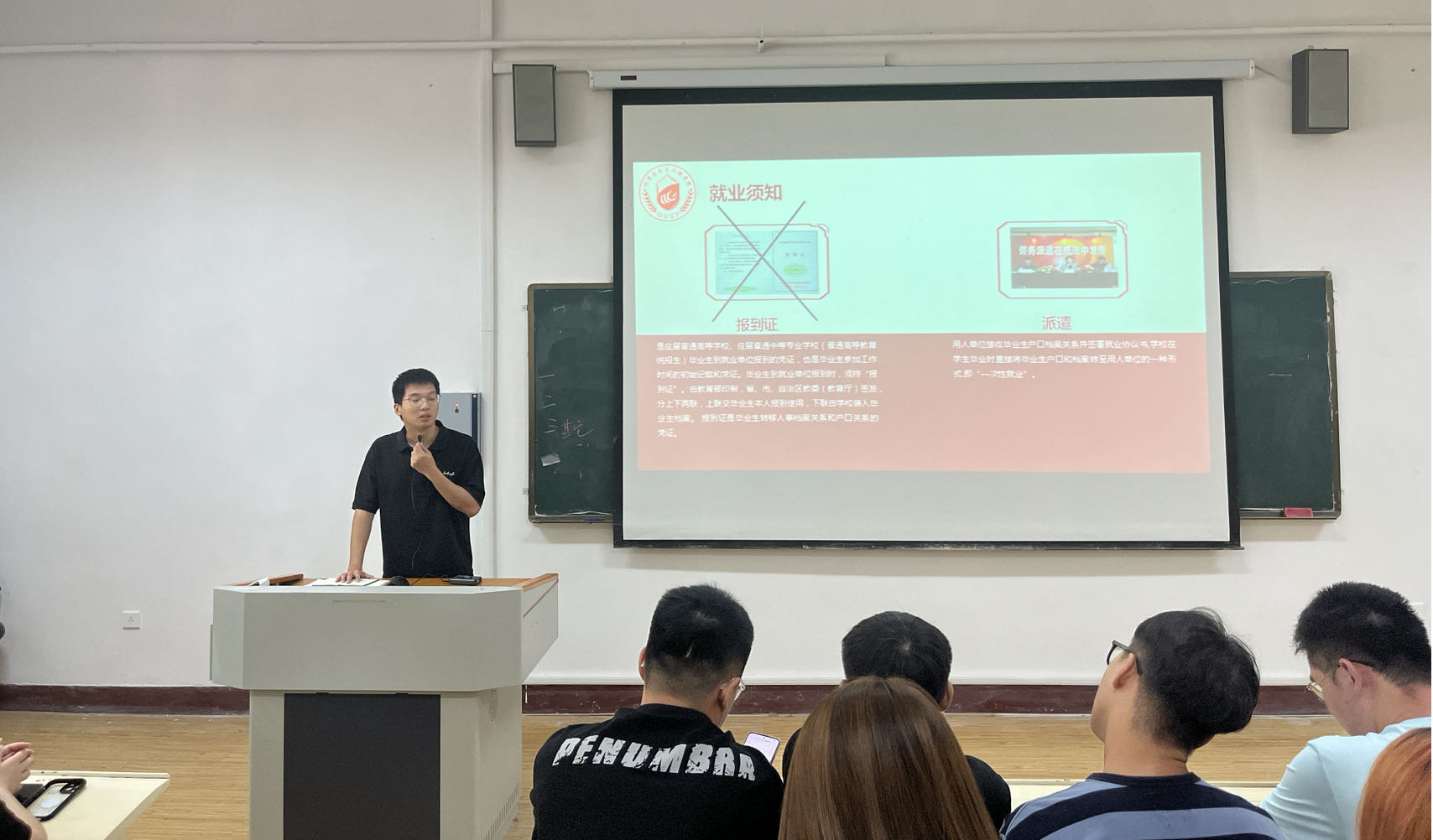 会议伊始,程丽表达了对同学们返回校园的热烈欢迎及对新学年的期待和祝愿,强调了返校注意事项,并从就业情况及宿舍管理等方面对新学期工作作出详细规划。她鼓励同学们积极投入学习,勇攀科研高峰。接下来,程丽结合往届毕业生就业去向的统计数据对当前的就业趋势进行了深入分析并重点回答了考公考编、应届生身份、档案派发以及就业类型等热点问题。她强调了当前竞争激烈的就业形势以及培养积极进取的态度的重要性,鼓励员工们积累经验、拓宽就业视野。此外,程丽还详细解读三方协议与灵活就业的内容,并提醒员工今年取消了报到证的发放等重点事项。